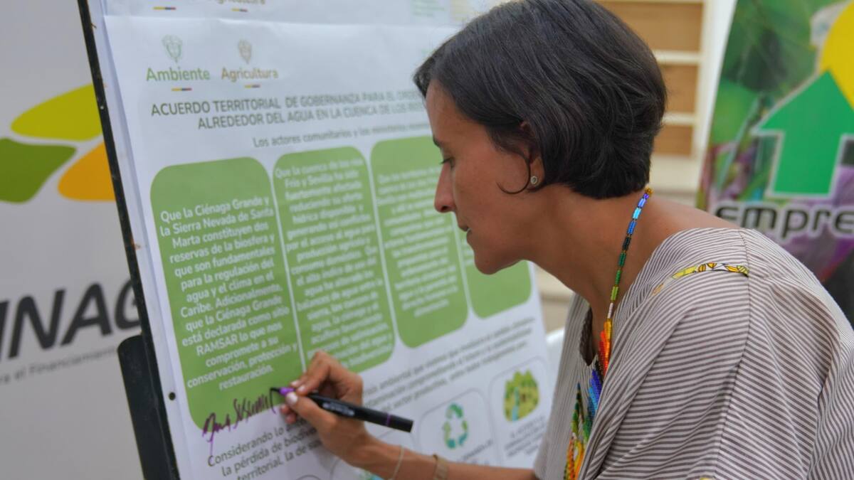 El ministerio de Ambiente a través de la jefe de esta dependencia Susana Muhamad, firmó este jueves 8 de Agosto un acuerdo con las comunidades de los ríos Frío y Sevilla, los gremios y las autoridades de esta Zona Bananera del Magdalena con el fin de fortalecer el ordenamiento alrededor del agua y la restauración ecológica.