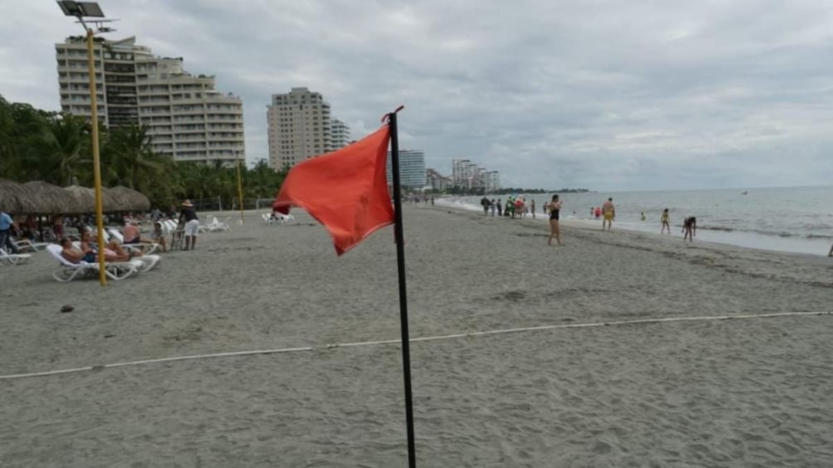 En la playa de Bello Horizonte, una de las más concurridas del corredor turístico del sur, fueron colocadas banderas rojas en señal de que ingresar al mar en estos momentos, es riesgoso.