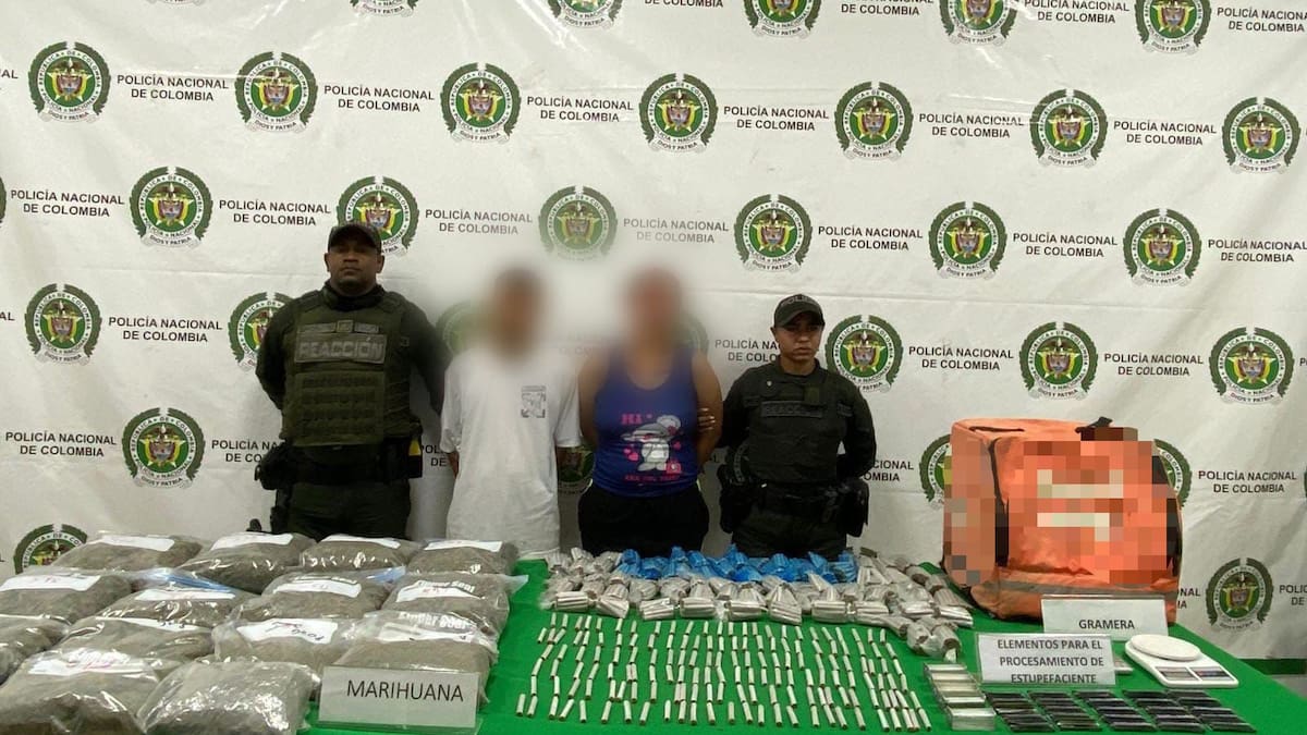 En el procedimiento se incautaron varios paquetes con cerca de 9 kilogramos de marihuana, además de elementos para su dosificación, una maleta de domicilios que, al parecer, era utilizada para transportar la sustancia.