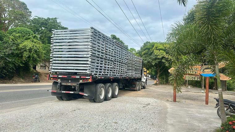 Al sector Mendihuaca, sobre la Troncal que une los departamentos de Magdalena y La Guajira, ya llegaron las estructuras del puente militar que será instalado para recuperar la comunicación terrestre entre las dos poblaciones.