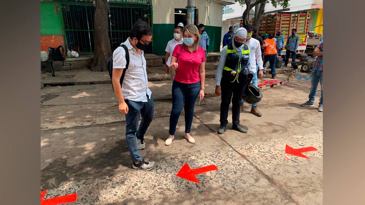 'Vamos a continuar haciendo todo este proceso para también demarcar con señalizaciones, cómo va quedar la nueva planeación de la movilidad en el entorno del Mercado Público. Lo novedoso es que va a haber zonas peatonalizadas, zona para parqueo de vehículos de carga y descarga, va haber zonas para vehículos privados, taxis, bicicletas, pero todo tiene como eje central, primero cumplir con el distanciamiento social, segundo desarrollar y poner en práctica los protocolos de bioseguridad, que la gran mayoría de los comerciantes no lo han considerado como parte de su dinámica y el desarrollo de sus negocios y tercero se van a hacer un control estricto de ingresos y egresos de todo el entorno del mercado', agregó Bula Ramírez.