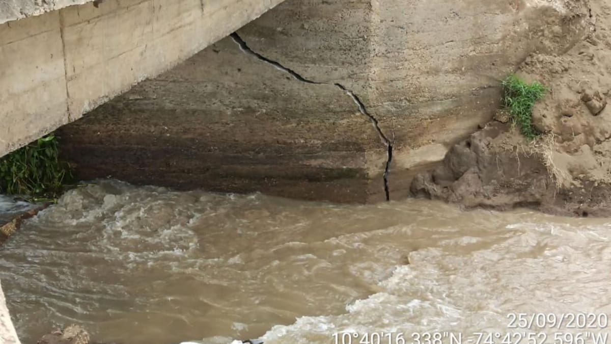 'El equipo de profesionales de la Corporación evidenció que la estructura tipo box culvert que atraviesa el caño en la Vía de la Prosperidad, se encuentra afectada con procesos de socavación evidentes y falla del talud de aproximación y del estribo', reporta Corpamag en un comunicado.