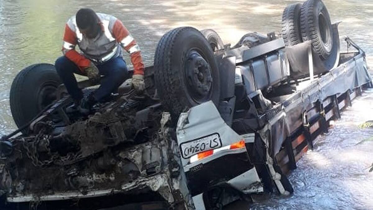 Un camión de la Policía Nacional cayó al río Tucurinca, en la Zona Bananera, en un accidente de tránsito que se registró en la mañana del lunes sobre el puente de esa localidad.