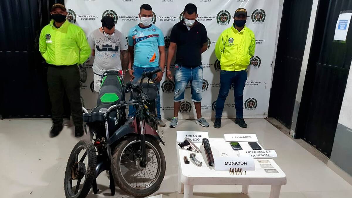 Las autoridades señalaron que los aprehendidos fueron Jesús Esneider Giraldo Muñoz, alias 'Rayo' de 23 años; Eliecer López Ospino de 32; y Luis Gabriel Lascarro Díaz, de 26, señalados por los delitos de fabricación, tráfico o porte de armas y/o municiones y receptación.