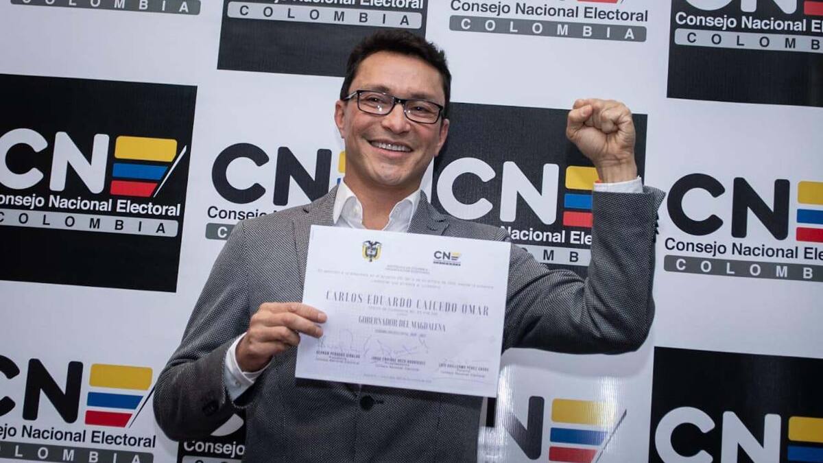 El Consejo Nacional Electoral, CNE, le entregó este jueves la credencial de gobernador electo del departamento del Magdalena para el periodo 2020-2023 a Carlos Caicedo Omar, quien obtuvo el pasado 27 de octubre más de 344 mil votos con su movimiento de izquierda Fuerza Ciudadana.