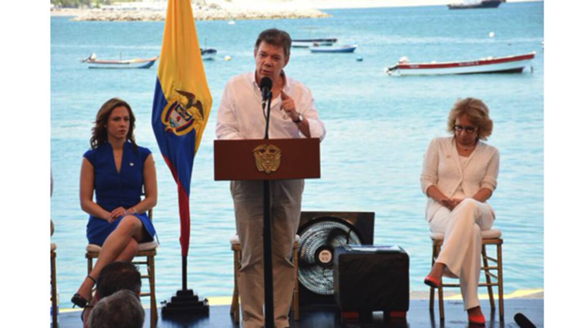 'A través de usted, María Claudia, en Santa Marta y de Elsa Noguera, en Barranquilla, he querido rendirle hoy un homenaje al Caribe', dijo Juan Manuel Santos.