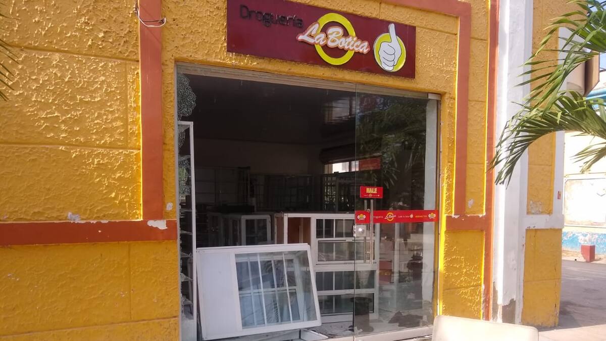 'Tengo el corazón arrugado y chiquitico', dijo Jorge Estrada, al ver el estado de ruinas como quedó la farmacia que administra, tras los hechos vandálicos de la noche del martes en Ciénaga, Magdalena.