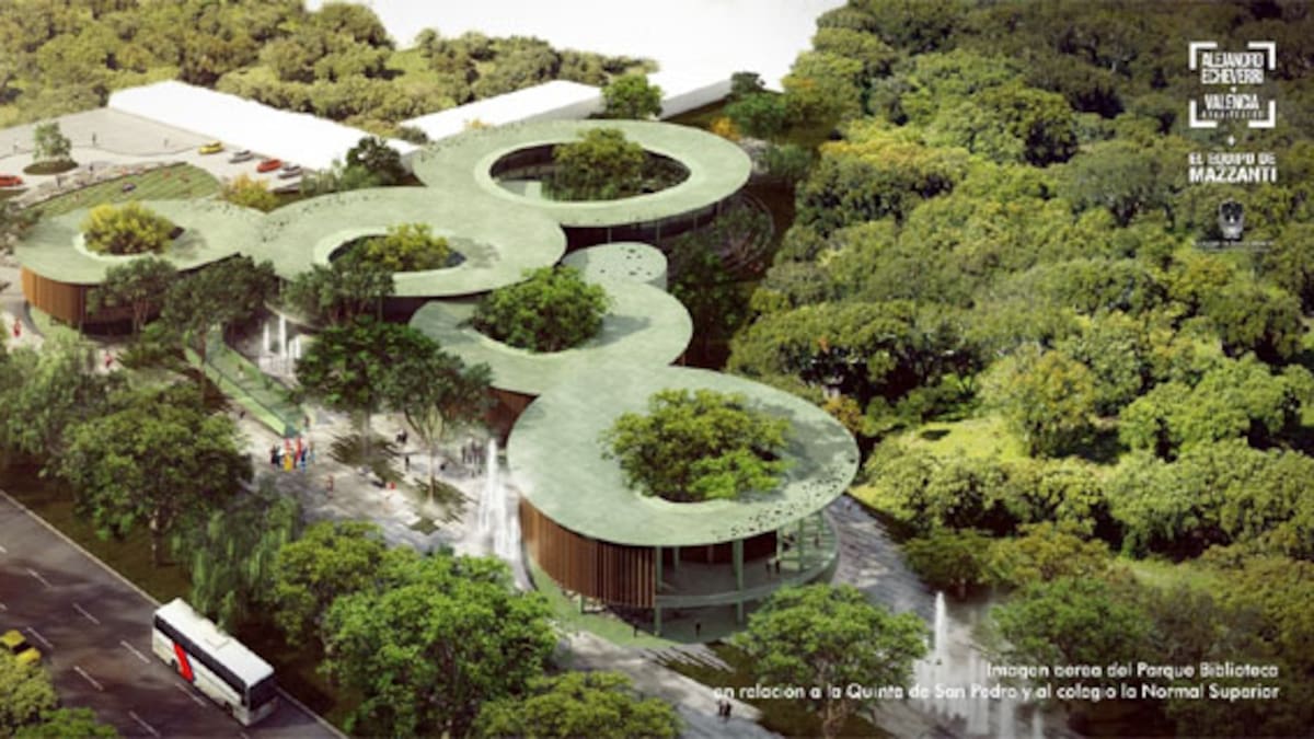 Consta de seis módulos en forma de anillos que se levantan entre la vegetación. Contará con ludoteca infantil, espacio de lectura para niños y adultos, sala de informática y auditorio.