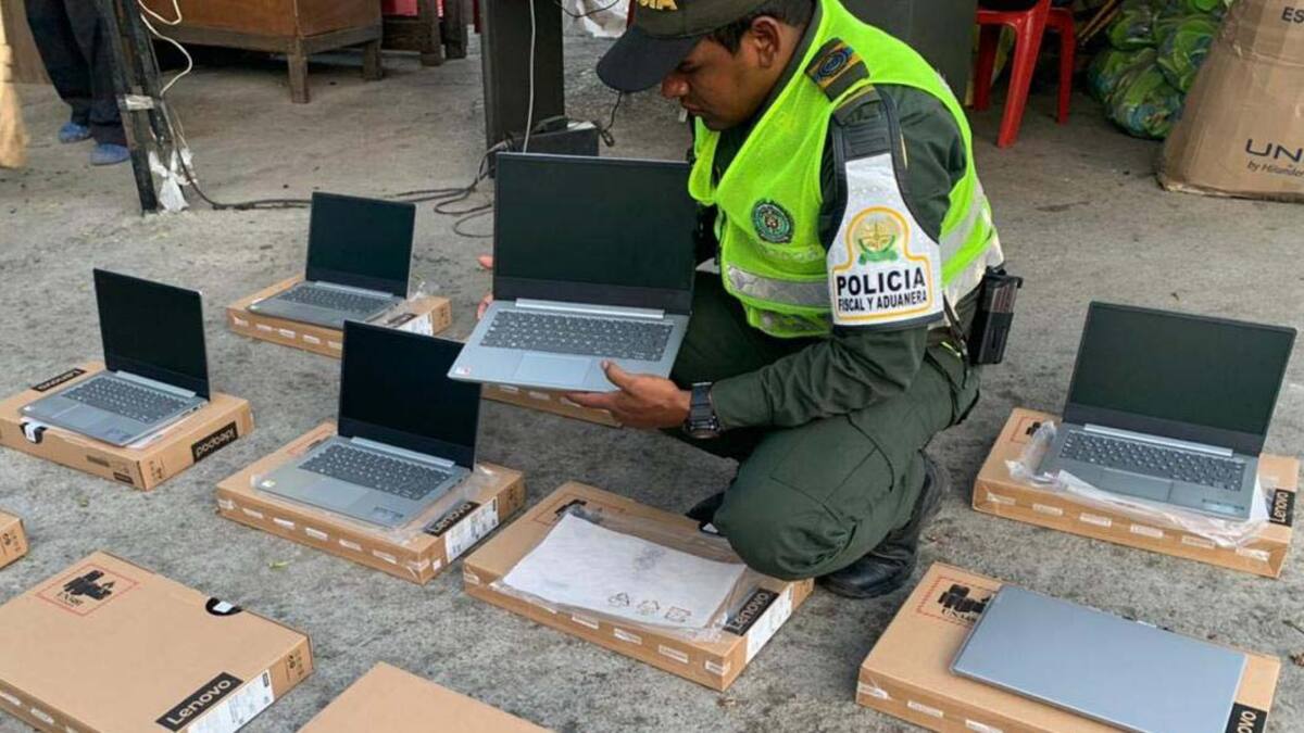 Mediante inspección a vehículos de empresas transportadoras y buses de servicio público, fueron decomisados 20 computadores portátiles, 6.720 unidades de confecciones y 1.450 unidades de otros artículos.