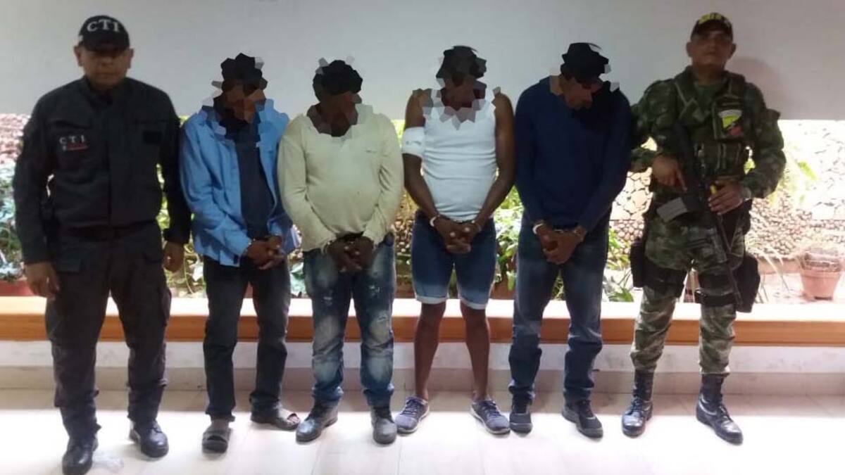 Durante la intervención hubo un intercambio de disparos en el que uno de los implicados resultó herido. Las autoridades explicaron que los detenidos fueron Aider José Ospina Meléndez, de 34 años, Andrés Rafael de la Hoz Armenta, de 40 años, Tarsicio José Hernández, de 49, y Elkin Gómez Polo, de 26, este último terminó con heridas en el abdomen y del brazo derecho.