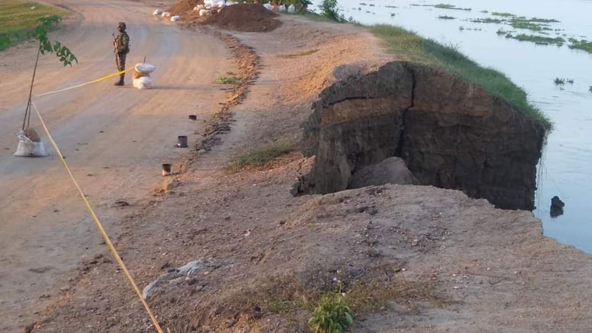 En la mañana del domingo la comunidad constató que por la socavación en esa margen del río el terreno sigue cediendo. Hoy el talud está a solo un metro de la vía.