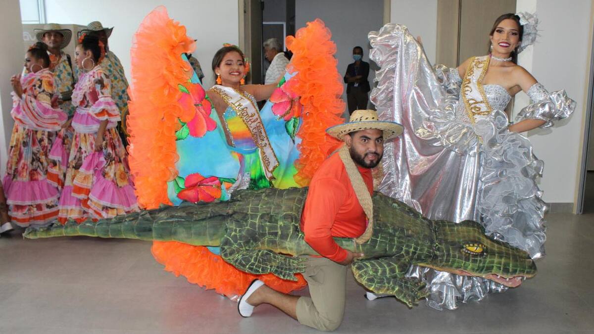 En la antesala al lanzamiento, el mandatario Tete Samper bailó al ritmo del Caimán con las reinas y los danzarines del grupo Tobiexe, bajo los acordes de la tambora del 'Oso'.