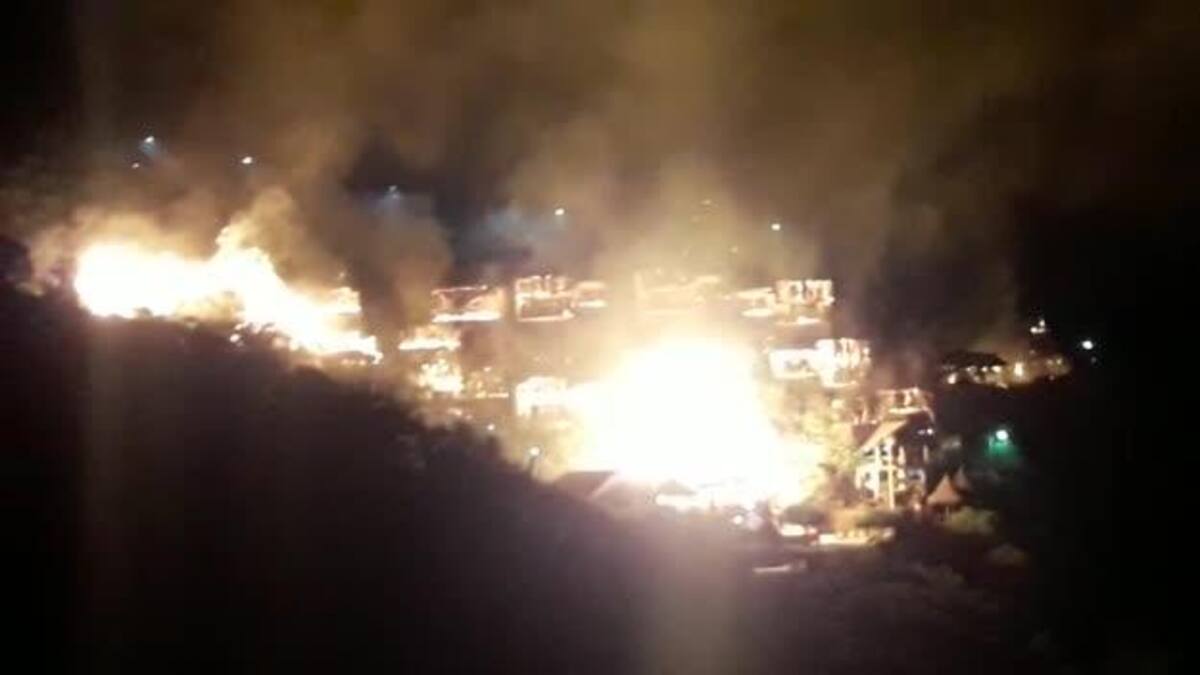 El incendio del hotel Jaba Nibue, en el cerro de Playa Grande, sector de Taganga, deja has el momento 8 afectados.