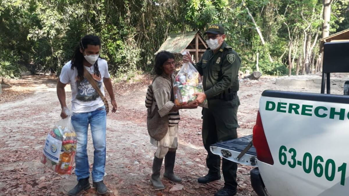Personal de la Policía Metropolitana de Santa Marta arribó hasta el resguardo indígena Kogui, ubicado en el Parque Tayrona, para hacer entrega de varias ayudas humanitarias a unas 12 familias de esa etnia.