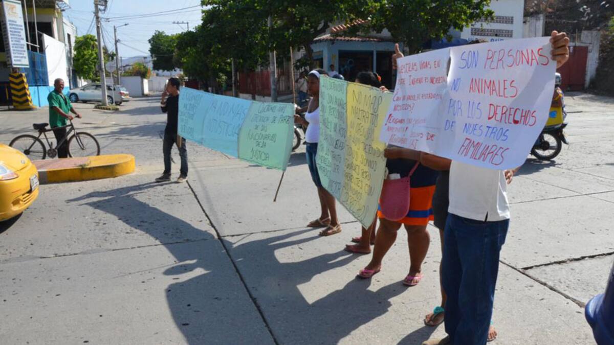 Familiares de los privados de la libertad en los calabazos de la Unidad de Reacción Inmediata, Uri, de la Fiscalía seccional Santa Marta, protestaron por el hacinamiento en que están sus seres queridos y reclamaron mejor trato.