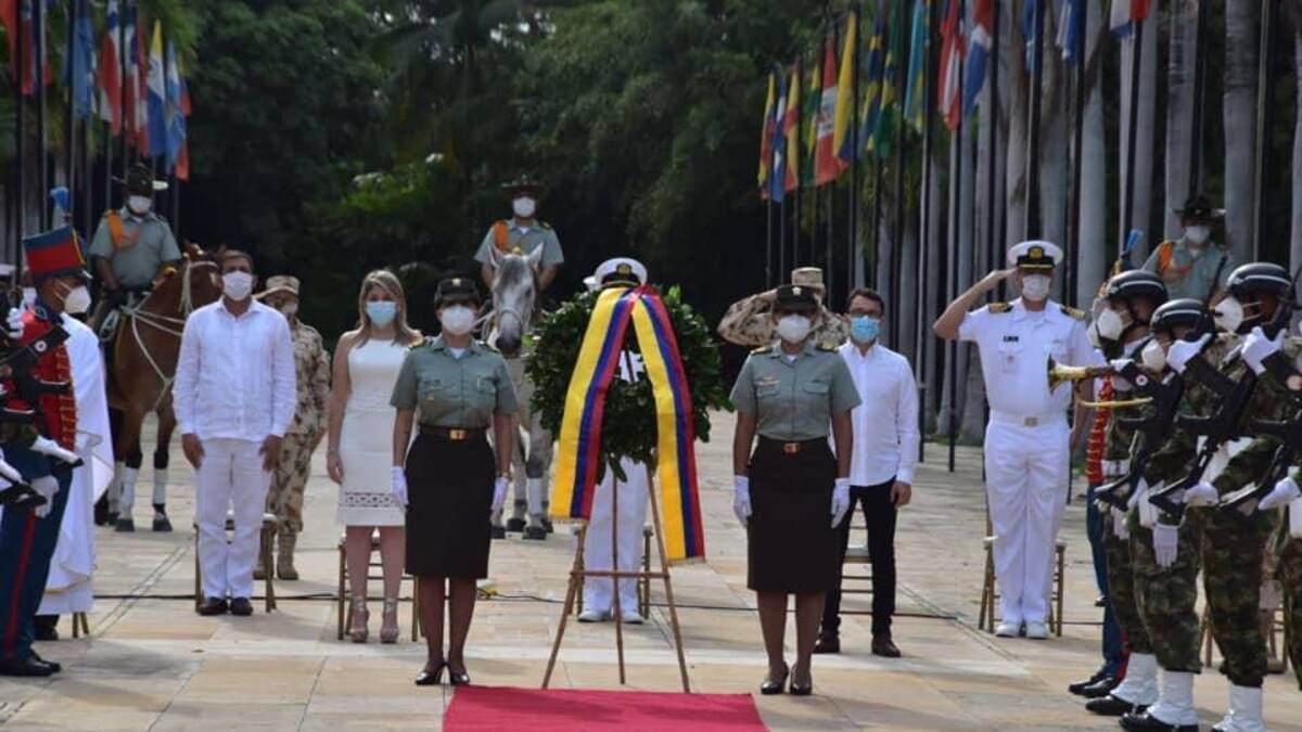 La alcaldesa de Santa Marta Virna Johnson y el gobernador del Magdalena Carlos Caicedo, tras ofrendar una corona de flores en el Altar de la Patria, manifestaron que la fecha 'debe servir para mantener vivo el espíritu con el que se deben afrontar las nuevas luchas que el presente propone'.