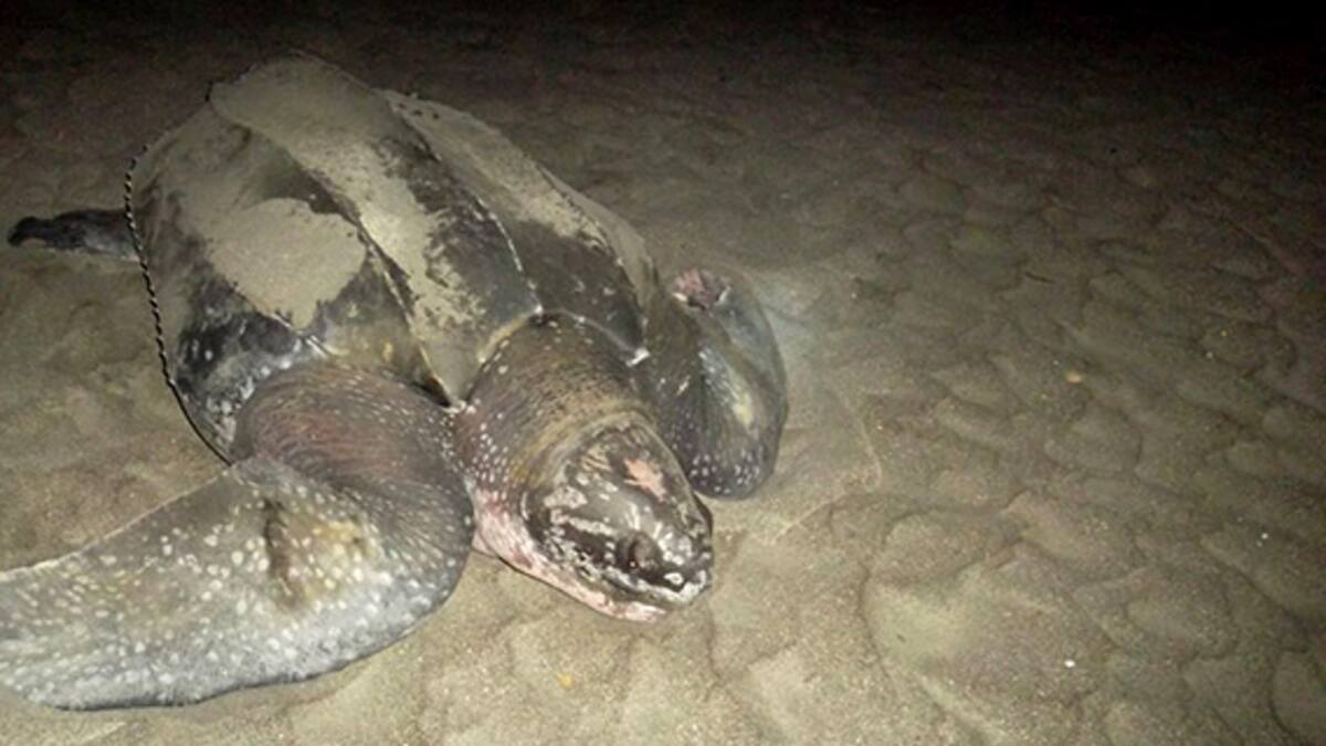 Se indicó que se le conoce con el nombre de Laúd y pertenece a la especie Dermochelys. Es la tortuga más grande de todas las marinas y habita en todos los oceános tropicales y subtropicales.