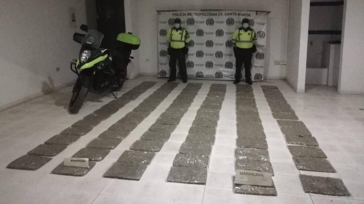 'Gracias a los rigurosos controles realizados por parte de nuestros uniformados de Tránsito y Transportes en las vías, se logró la incautación de 70 kilos de marihuana que eran movilizados al interior de un vehículo de carga, evitándose la comercialización de esta sustancia que desafortunadamente viene afectando la salud y la integridad de nuestros jóvenes'. Señalo el coronel Óscar Solarte Castillo, comandante de la Policía Metropolitana de Santa Marta.
