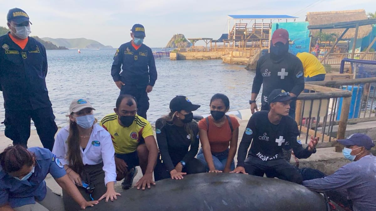 Una manatí rescatada por pescadores en una playa del Parque Tayrona, fue devuelta a su hábitat luego de haber sido recuperada en el Centro de Atención, Valoración y Rehabilitación de Fauna Marina, CAVR, de la Corporación Autónoma Regional del Magdalena Corpamag, en articulación con el Acuario de El Rodadero.