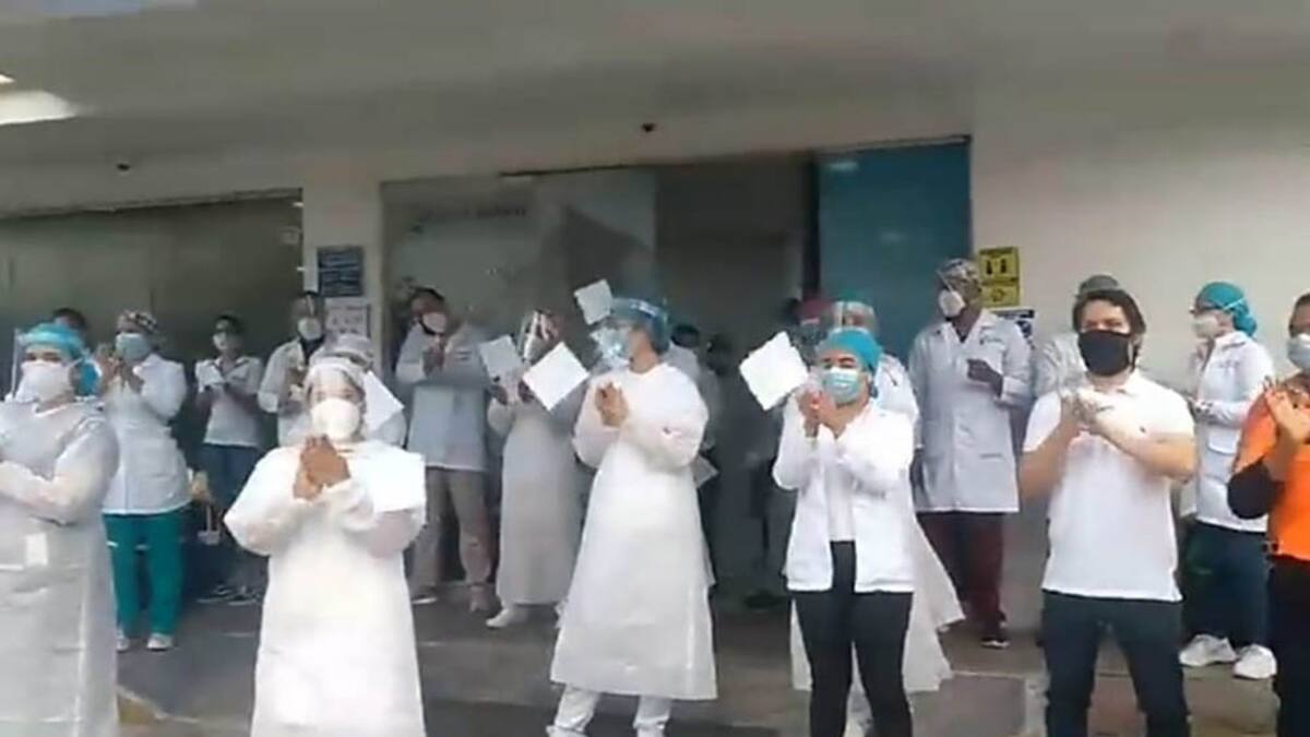 Con banderas blancas, vestidos con sus trajes de bioseguridad y con las sirenas de las ambulancias encendidas, el personal de la salud hizo un llamado de tolerancia para la ciudadanía en general.