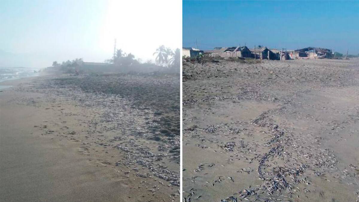 'Como es costumbre me levanté a las 4:00 de la mañana para salir a pescar y lo primero que siento es la podredumbre al salir al patio de la casa, que da a la playa, por lo que me dirigí hacia la orilla y descubrí una gran cantidad de peces muertos, en su mayoría alevinos de lisa', afirmó al respecto Enrique Maldonado Lara, líder comunitario de Tasajera y directivo de la asociación de pescadores del ente territorial.