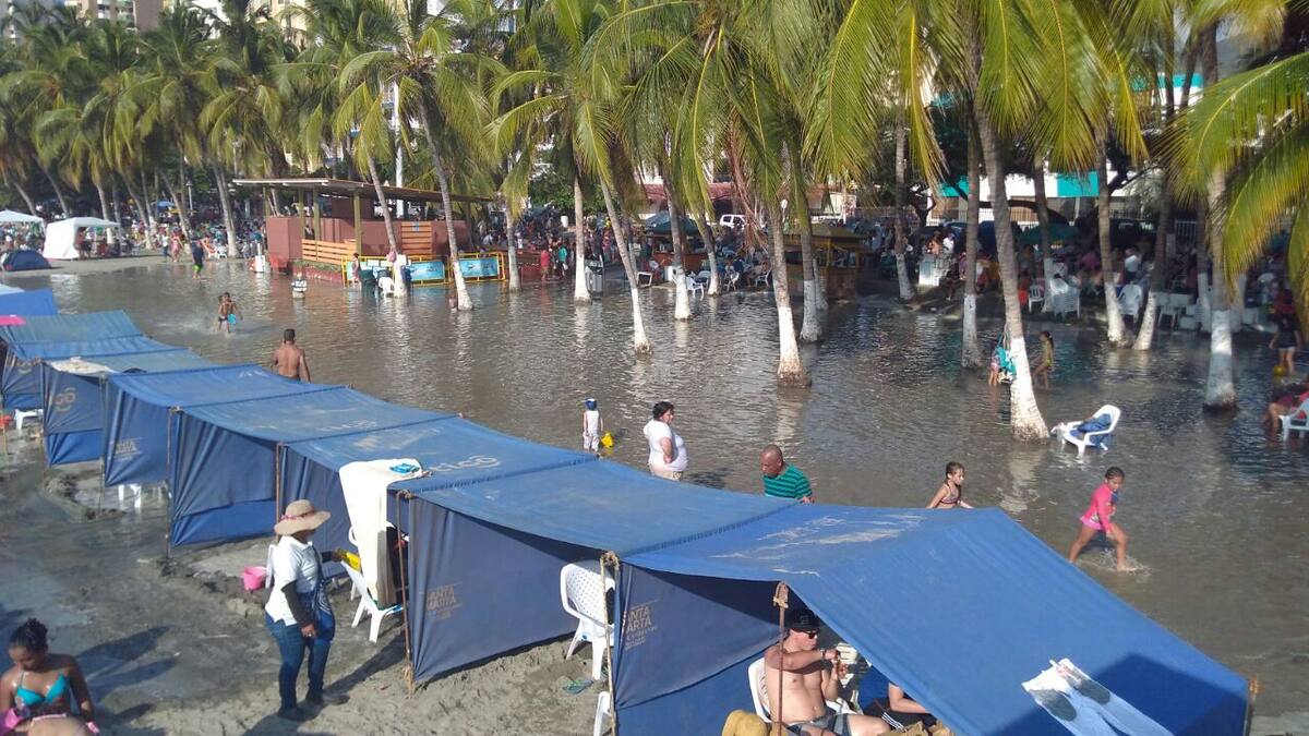 Una ola gigante sorprendió a centenares de turistas que disfrutaba del sol y el mar en el balneario turístico de El Rodadero, en Santa Marta. El agua llegó hasta el malecón, en un recorrido de aproximadamente 20 metros desde la orilla.
