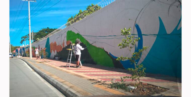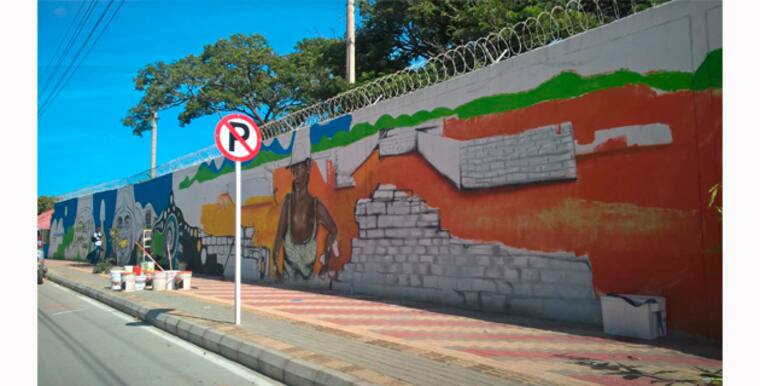 El mural, con 384 metros de longitud, es quizás uno de los más grandes del Caribe colombiano y es ejecutado por diez artistas, liderados por la arquitecta y pintora, oriunda de Valledupar, Yarime Lobo Baute.