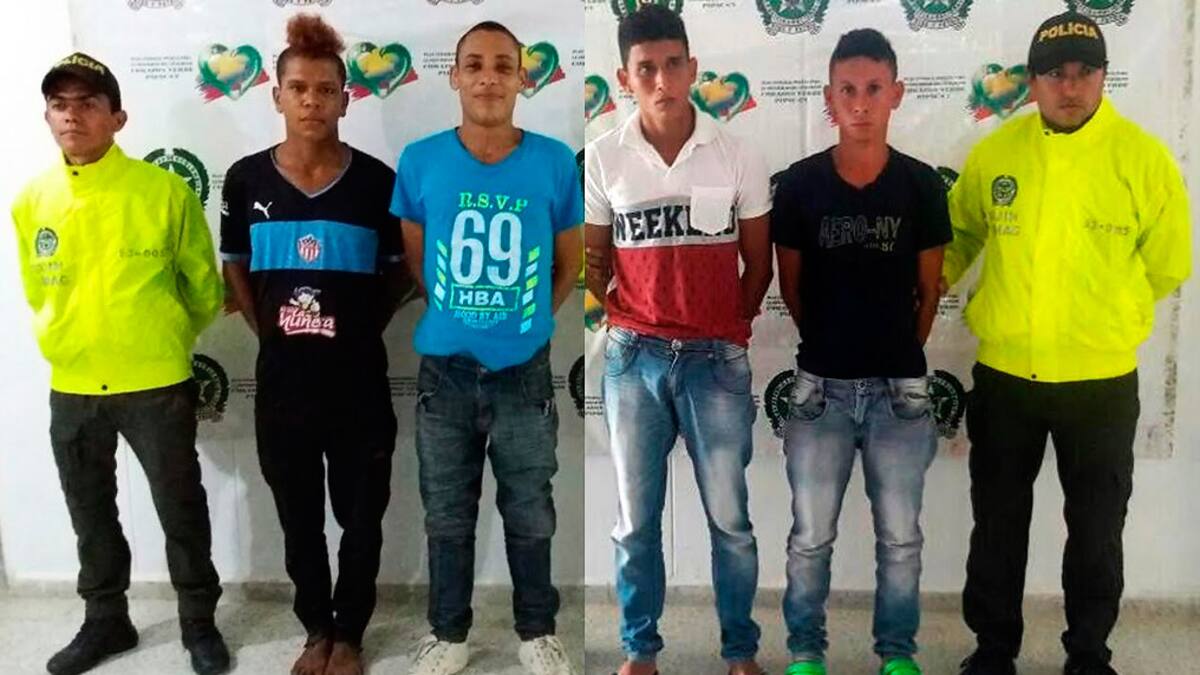Los capturados fueron Luis Alberto Ayala Hernández, alias 'Cachama', de 24 años, natural de Ciénaga, supuesto líder de la banda; Luis Fernando García Hernández, alias 'El Flaco', de Ariguaní, de 20 años; Edilberto García Montenegro, de 31, alias 'Vecino', y Andrés de Jesús Canoles Araújo, alias 'El Capo', de 27 años, estos últimos oriundos de Ciénaga.