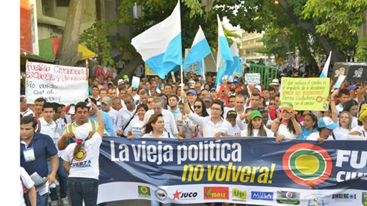 Con una nutrida marcha, el movimiento Fuerza Ciudadana que lidera el ex alcalde de Santa Marta, Carlos Caicedo, mostró esta tarde su respaldo al gobierno actual en cabeza de Rafael Martínez y le dijo a la clase política tradicional que "les llegó la hora".