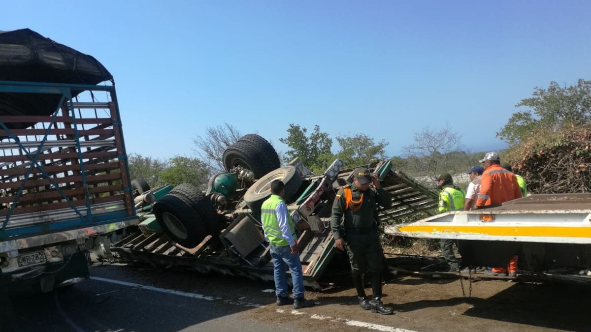 Un camión cargado con 15 reses se volcó a la altura del kilómetro 31, en la vía que conduce de Ciénaga a Barranquilla.