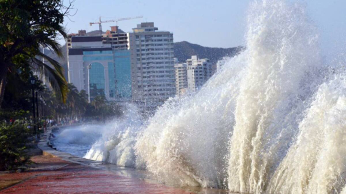 En Santa Marta el mar amaneció ‘picado’. El fuerte y continuo oleaje que rompe contra el camellón de la bahía produce un espectáculo que concentra la admiración de nativos y turistas. Las olas alcanzan alturas de hasta cuatro metros.