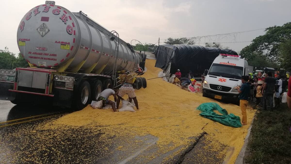 De acuerdo con las autoridades, las cargas de las tractomulas implicadas se derramaron en la vía y la comunidad se llevó el maíz contaminado por el aceite en sacos, mientras que Sánchez fue evacuado en ambulancia hacia Fundación.