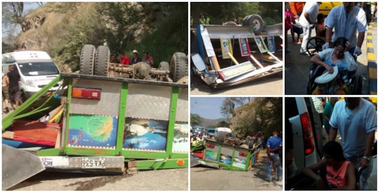 Una chiva que se desplazaba entre Santa Marta y el corregimiento de Taganga (Magdalena) se volcó este domingo dejando como resultado 30 turistas heridos, entre ellos, dos menores de edad.