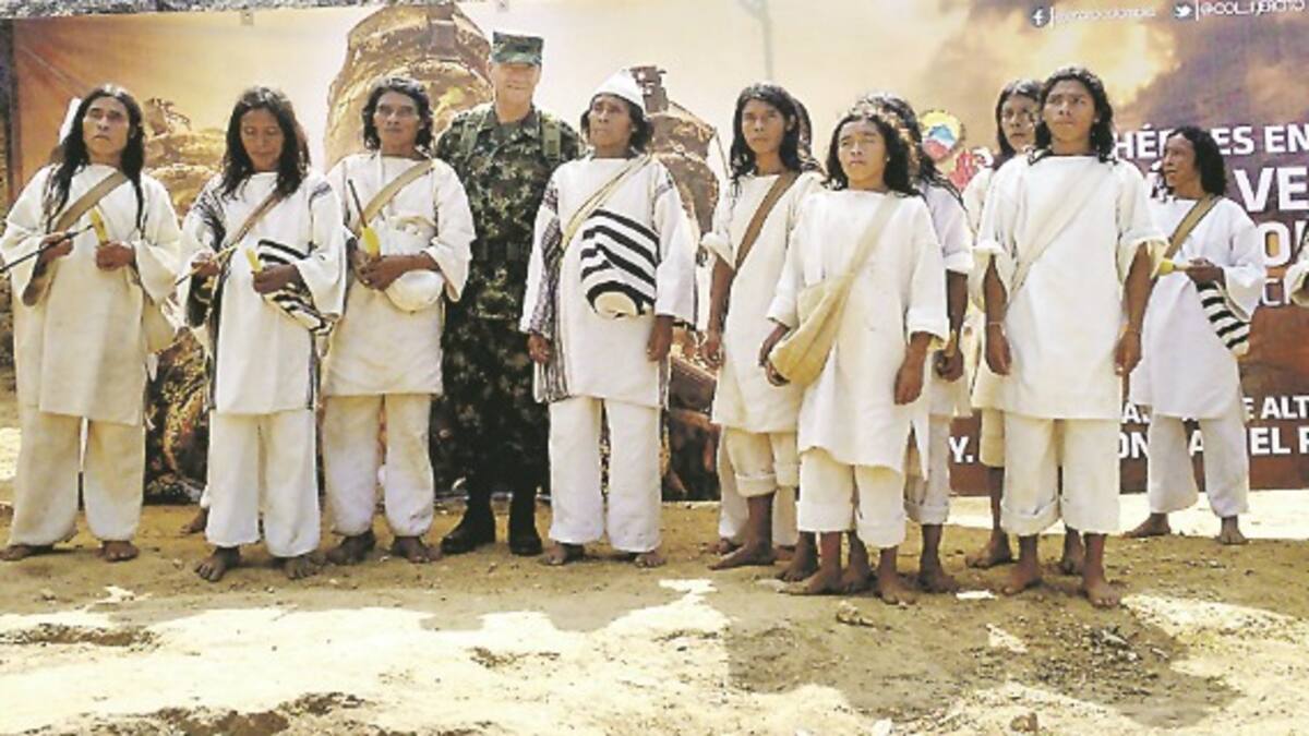 'No queremos guerrillas, ni paras y tampoco cultivos ilícitos', comentó el cabildo del resguardo kogui, Malayo, Arsario, José de los Santos Sauna, delante de un grupo de militares.