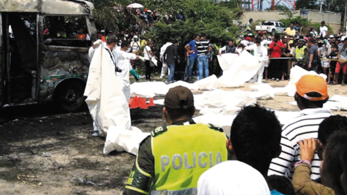 Una tragedia sin precedentes sacude al municipio de Fundación. 31 niños murieron calcinados y 16 más resultaron heridos ayer a las 11:40 de la mañana, al quemarse la buseta que los transportaba en el barrio Altamira, a dos cuadras de la Iglesia Pentecostal Unida de Colombia, a donde habían asistido minutos antes.