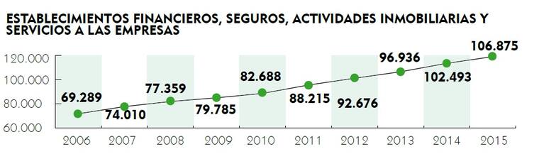Así, el sector de Establecimiento Financieros, Seguros, Actividades Inmobiliarias y servicios a las empresas ha tenido un comportamiento al alza a través de los años.