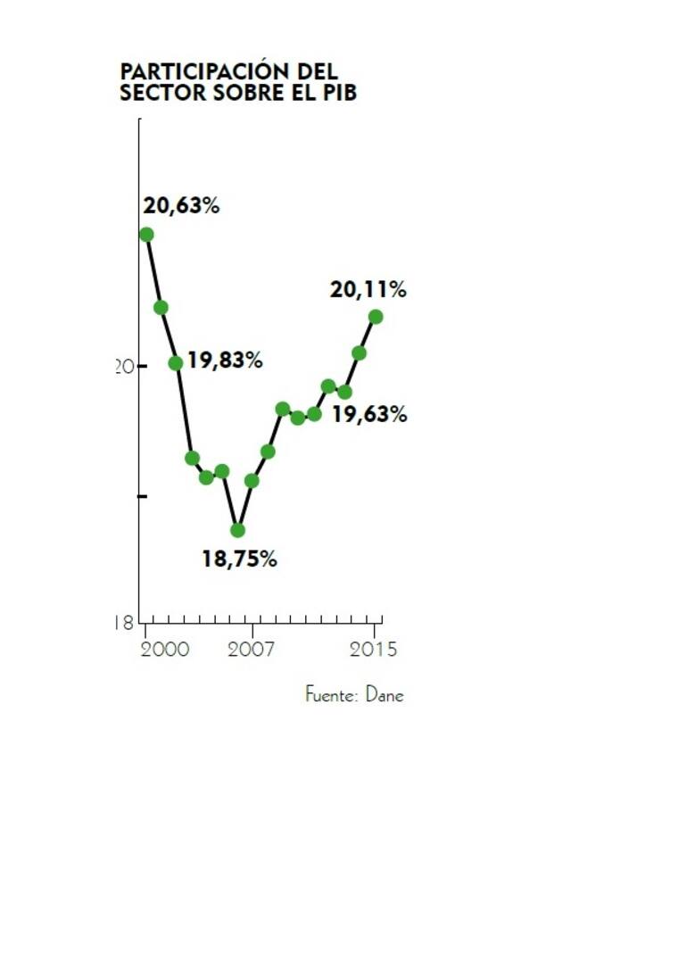 Desde el 2011 hasta el 2015, el sector presenta una recuperación de su participación sobre el PIB nacional, alcanzando 20,11% en último año, después de tener la participación más baja en el 2011 con 18,37%.