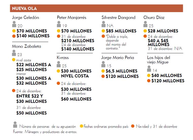 Los nuevos talentos cobran entre $22 millones y $30 millones por presentación en fechas ordinarias.