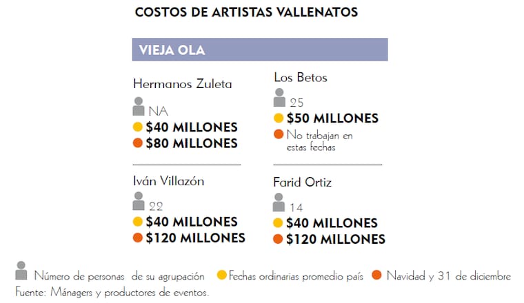 Mientras que los artistas que pertenecen a la ‘vieja ola’, y que cuentan con mayor trayectoria y experiencia en la industria pueden presentarse por valores que rondan los $40 millones en temporada baja.