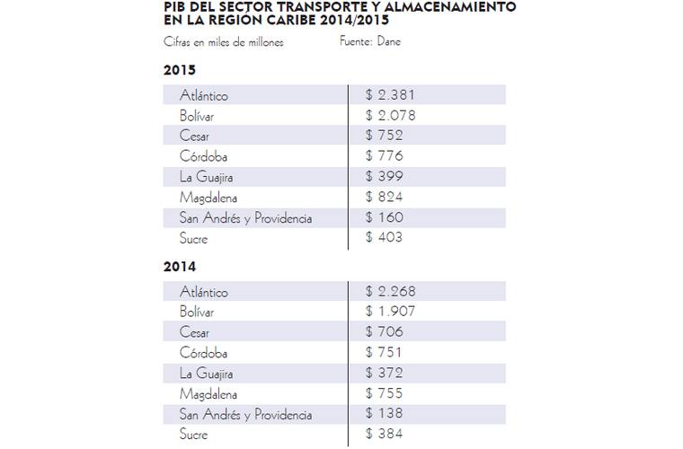 El sector aportó 8% al PIB regional, con lo cual año tras año este sector se consolida como un eje transversal de desarrollo para esta parte del país. Y frente a 2015, el aporte del sector al PIB de la región Caribe creció en un 4,8%. Miguel Espinosa Alonso, presidente de la Federación Colombiana de Agentes Logísticos en Comercio Internacional (Fitac), destaca que el subsector de transporte fluvial, ya que ha generado que Colombia evalúe otros medios alternativos y pueda realmente ofrecer estrategias de multimodalismo para la carga. 'Así mismo, la ampliación de varias terminales aéreas en el país, permite que los empresarios tengan nuevas alternativas para movilizar mercancías, especialmente aquellas de alto valor agregado'.