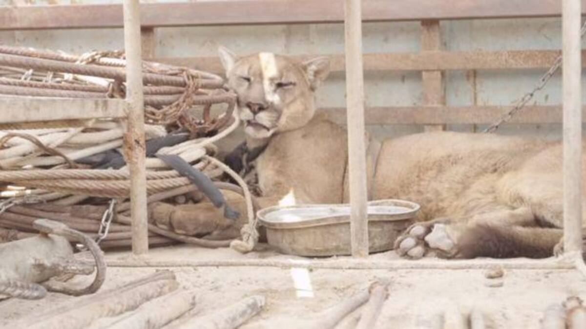 Un puma fue liberado luego de pasar 20 años en una jaula de circo, el felino vivía entre cadenas y objetos oxidados, era trasportado a bordo de una camioneta en pésimas condiciones.