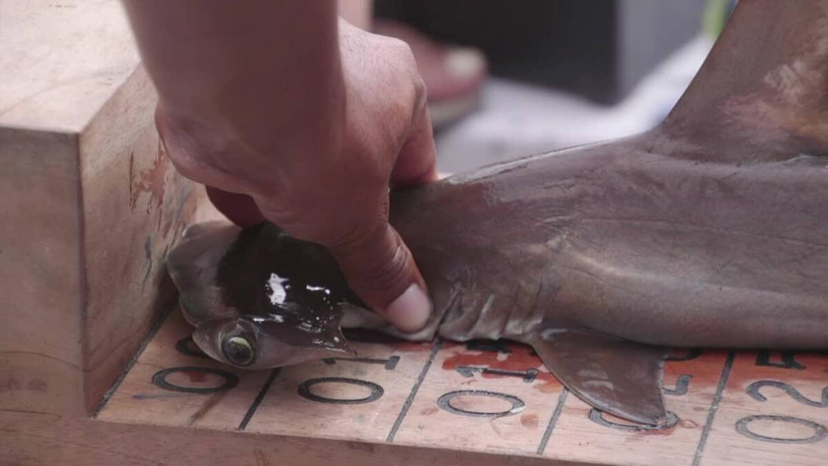 El capitán acerca la lancha a la malla. Uno de los asistentes agarra al escualo, de medio metro, y lo coloca sobre una mesa para que entre Espinoza y el resto del equipo lo midan, lo pesen, le determinen el sexo y le implanten el chip en el dorso que servirá para conocer sus hábitos y su ruta migratoria.
