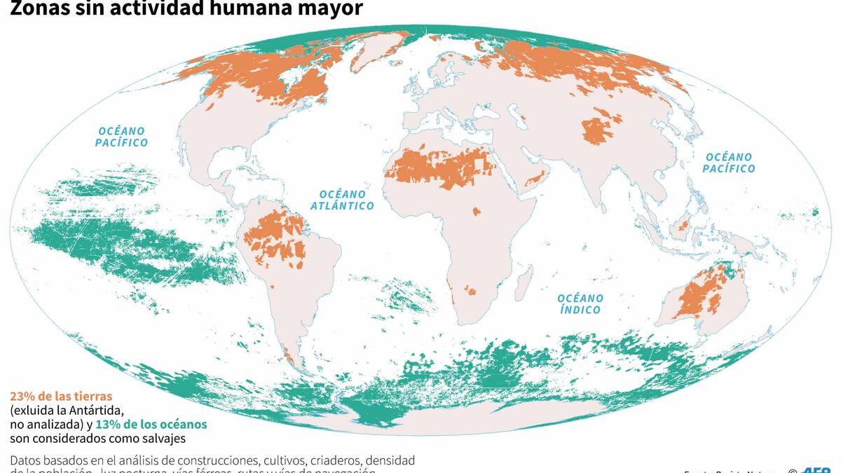 Los espacios salvajes, es decir, las tierras y los mares no afectados por la expansión humana y la explotación a escala industrial de los recursos naturales (bosques, energías fósiles, tierras cultivables...) representan en la actualidad el 23% de la Tierra, según un artículo publicado este miércoles en la revista Nature.