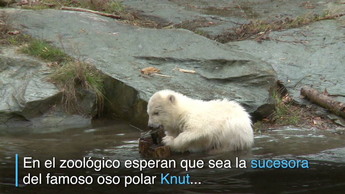 La nueva celebridad del zoológico de Berlín, una adorable cachorra de oso polar, se mostró por primera vez ante las cámaras el viernes, tres meses y medio después de su nacimiento