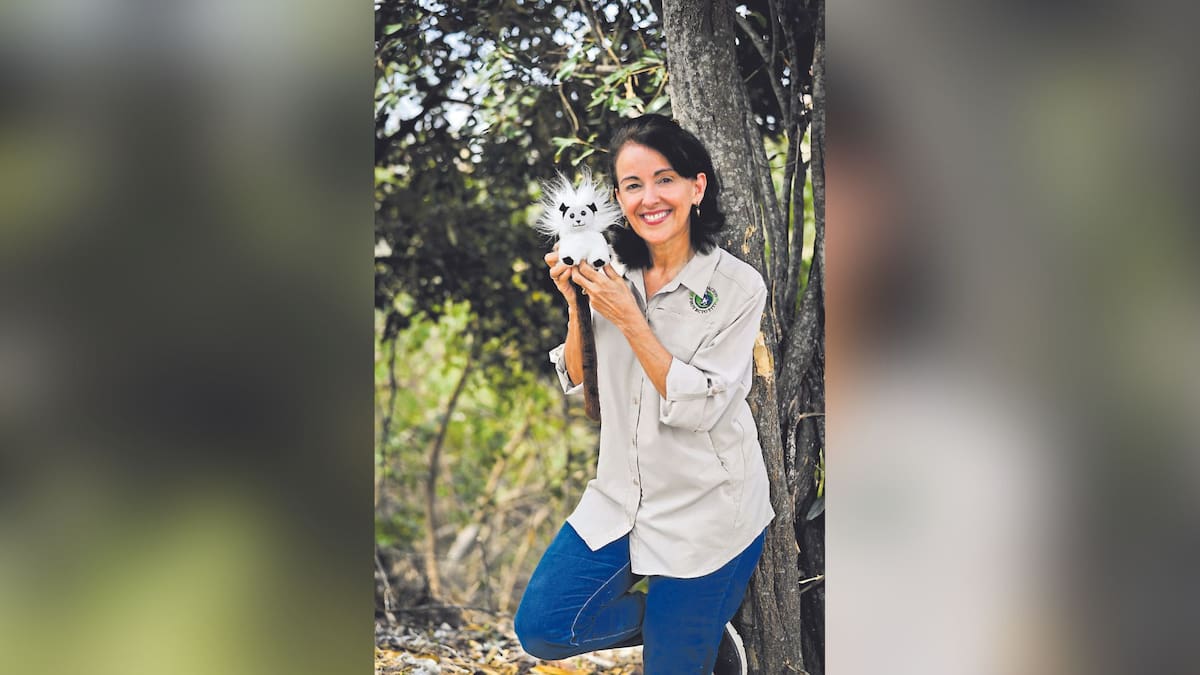 Con unas botas, jeans, camisa de color beige y una gran sonrisa, esta barranquillera de 56 años trabaja día a día y de sol a sol por la defensa del mono tití cabeciblanco, pues es un pequeño primate que habita únicamente en los bosques tropicales del Caribe colombiano y que, además, se encuentra en peligro crítico por la deforestación de su hábitat natural.