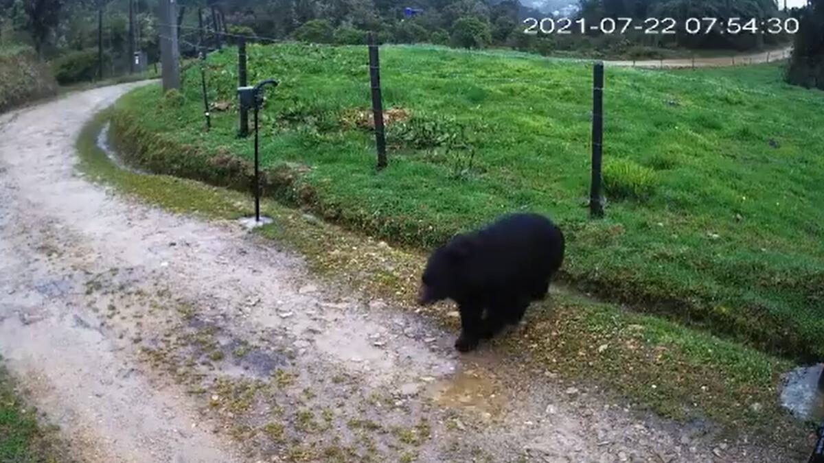 El momento fue grabado por las cámaras de seguridad instaladas en la vereda El Verjón y se puede ver al animal cruzar una cerca de púas para seguir con su camino.