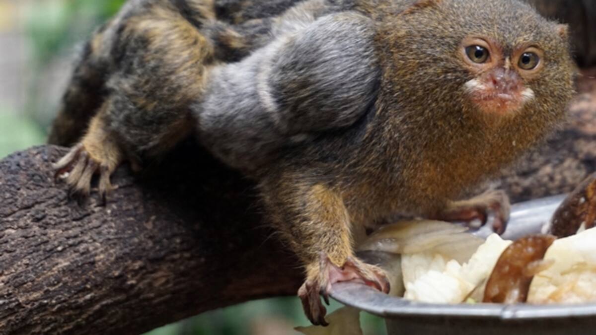 El tití pigmeo (Cebuella pygmaea), nativo de Colombia, es la especie de mono más pequeña del mundo. Desde su nacimiento, la nueva cría ha permanecido en el dorso de sus padres, cómo continuará hasta que esté lista para valerse por sí misma, periodo que normalmente toma de uno a dos meses.