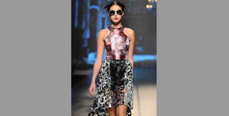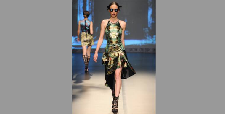Bragas, bustieres y prendas clásicas armonizaron en la pasarela con las grafías naturales del Art Nouveau, que se evidenció en prendas con brillo, propias de Camacho, en las que predominó el verde, combinado con azul, coral y dorado.
