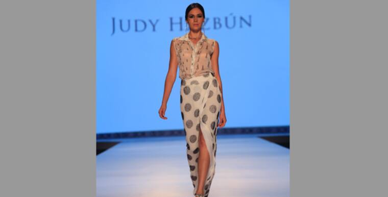 Judy Hazbún es feliz, y lo demuestra cada vez que se sube a una pasarela: configura una mujer radiante, llena de alegría, que le sonríe a la vida porque va vestida de ella misma: pura emoción.