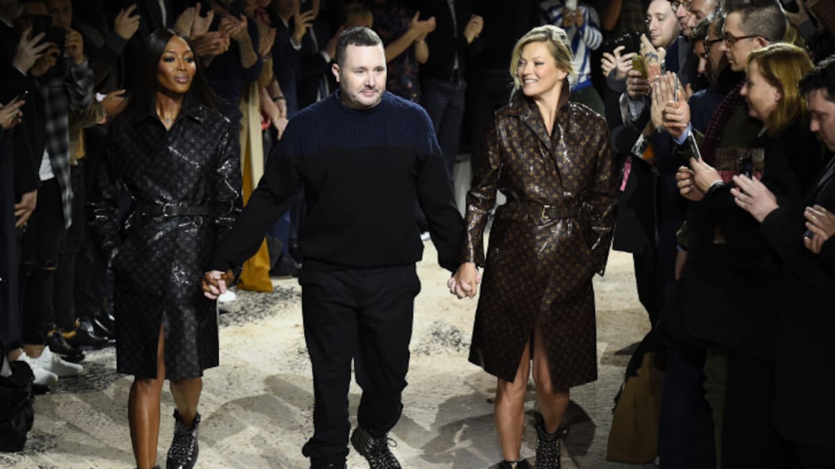 Fue una despedida a lo grande. El británico Kim Jones, director artístico de Louis Vuitton hombre, cerró ayer en París su último pase con la marca con el desfile sorpresa de las supermodelos Kate Moss y Naomi Campbell.